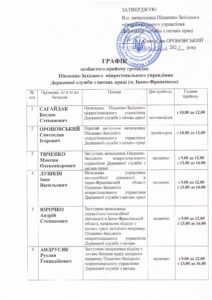 * Особистий прийом громадян начальником, першим заступником начальника та заступником начальника Південно-Західного міжрегіонального управління Державної служби з питань праці проводиться за попереднім записом за телефоном: (0342)75-22-29, м.Івано-Франківськ.